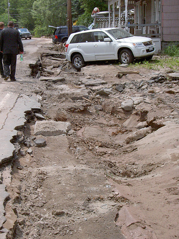 This is a typical roadside where the flooding was the worst in Livingston Manor.