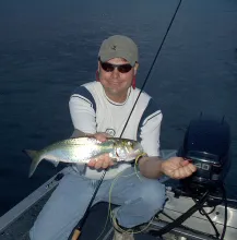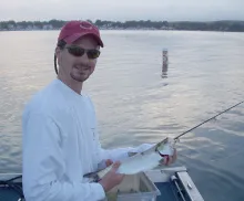 There is a bonus to fishing for hickories. Very often, particularly in the fall when young of the year baitfish descend estuaries and migrate towards the open ocean, other game fish can be caught side by side with the shad as they compete for the same food source. I know of several southern New England locations that I fish in October and November where a day's catch is split right down the middle between shad and schoolie stripers. There are even cameos made by the occasional bluefish or weakfish. Also, be aware that with the decline in menhaden populations the hickory shad have become a larger part of the diet of big stripers and blues. When hickories are around, these larger fish may not be far away. Because of this, I tend to keep at least one heavier rod on the boat rigged up in case the big girls make an appearance.