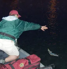 Let the fish dictate what presentation to use. When they are actively busting bait on top, an active and panicked retrieve is an obvious choice. When the fish aren't showing themselves and you're probing for them deeper in the water column, the best retrieve is usually one with a slower and steadier cadence. And when hickories are feeding in a rip, they will actively move within the strong current but will rarely leave it to chase a fly. In this situation the best retrieve is usually a simple swing of the fly in the rip, letting the water present the fly to the fish feeding within it. One would think that night time fishing would require a slowed down retrieve, but I have rarely found that to be the case. These are generalities and should be taken as such, but they are very good places to start presentation wise when confronted with certain situations.