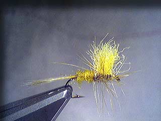 At the Fly Fair 1999 I saw a, at least for me, new winging material called Shimazaki Airthru (Fly Rite produces a similar material). It's quite strong, realistic and easy to use. Anyway I did not buy any of it. Most of my dries are tied with the aid of polyyarn, which is superfloatant, strong, cheap and comes in many colours. So I just converted the wing described in the pamphlet to a polywing, and a new highly visible fly for grayling was born.