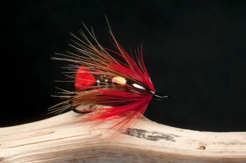 | Second hackle | Red soft cock hackle, barb length as hook length |