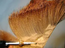 12. Cut a new bundle of hair like the previous from the skin. Cut off the tips to form short, uniform hairs.